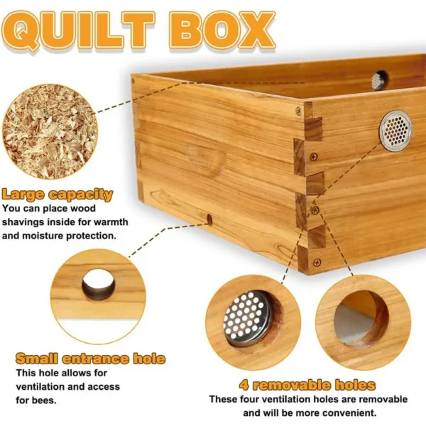 Quilt Box provides optimal air circulation and temperature regulation for your beehive. This Quilt Box, manufactured , ensures the comfort and well-being of your bees throughout the year. With its convenient design and high-quality materials, our Quilt Box is a must-have for every beekeeper.